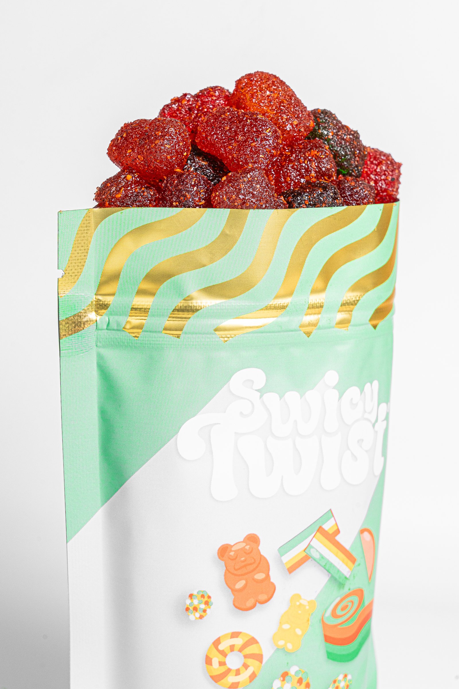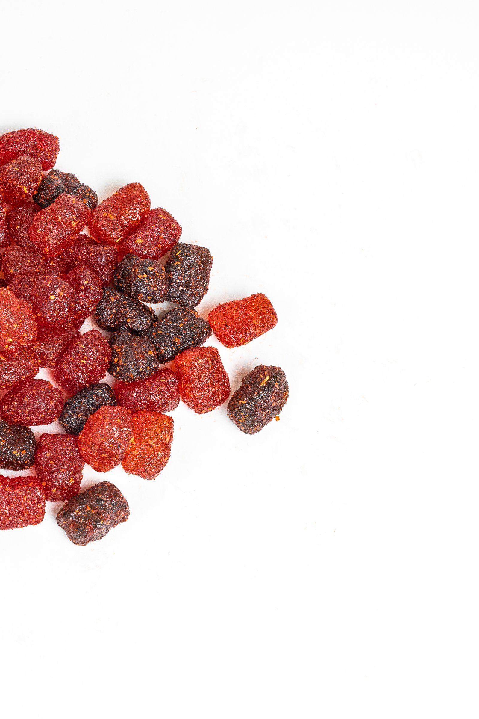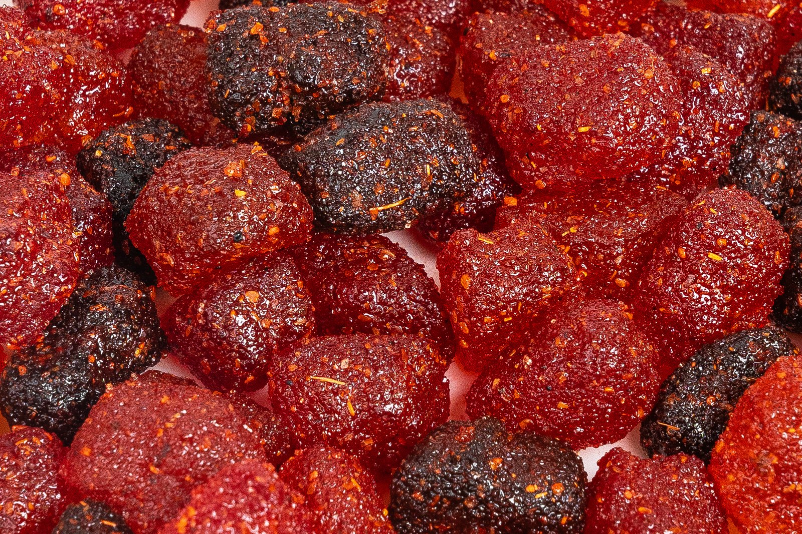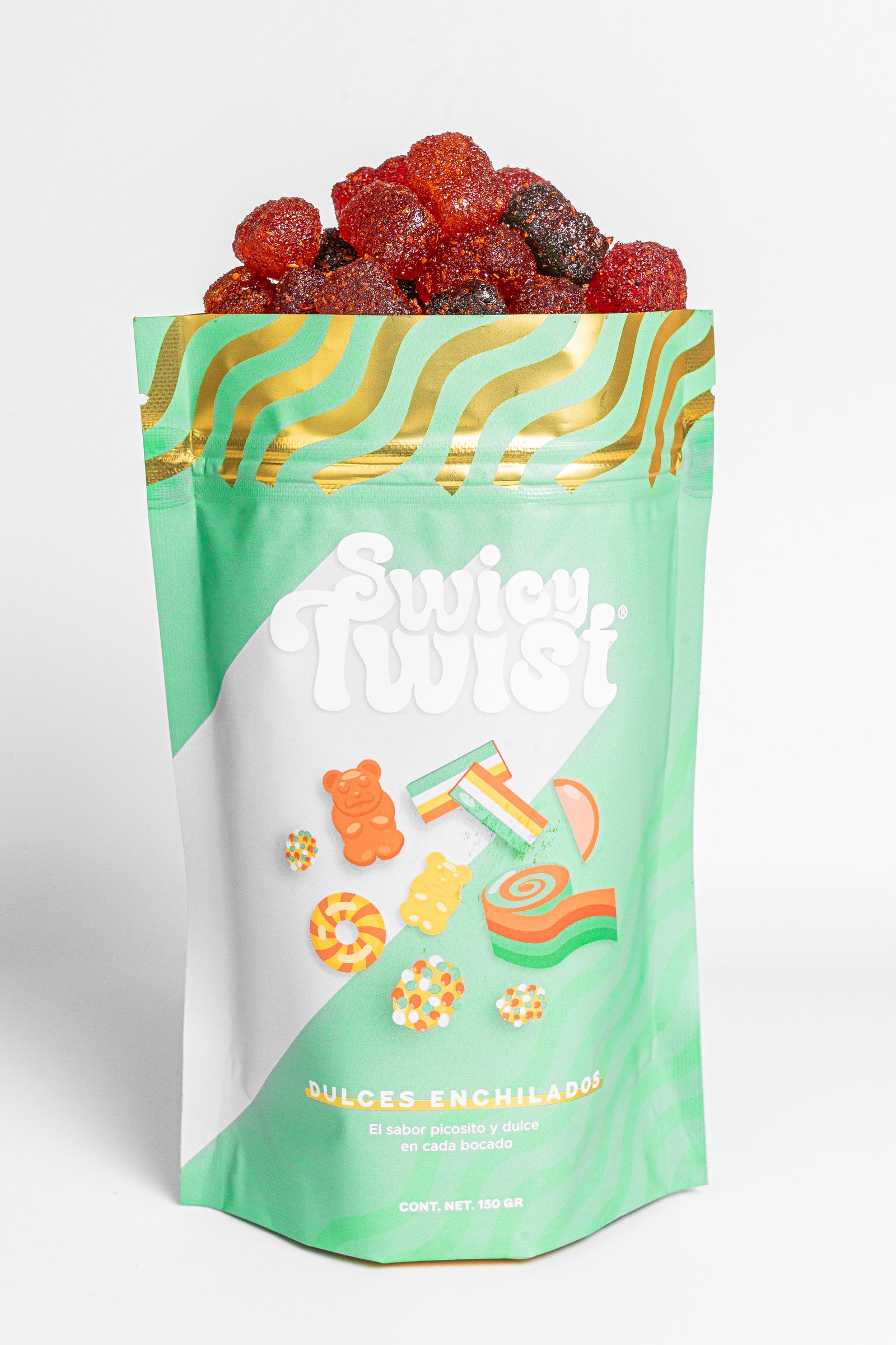 Gomitas de sabores frutales recubiertas con chile, sal y chamoy. La combinación perfecta entre dulce y picante.